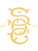 White t-shirt with 'Supercarownerscircle' logo on a red car